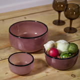 Infuse color, fun, & artisanal beauty into your dinnerware collection with the set of 3 solid glass nesting Felipa Bowls.