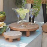 These natural teak pedestals provide just the right amount of elevation to showcase plants, display fruit, or serve light bites.