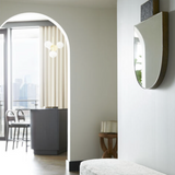The Lianna Mirror's unique shape is a statement in itself, but combined with a hammered, gold-finished iron frame and black chiseled marble crown, it becomes a true focal point for any room. Features a security cleat attachment. Marble may vary.