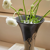 Stoneware with partial covered glaze. Including lid, Lid is detachable from vase.